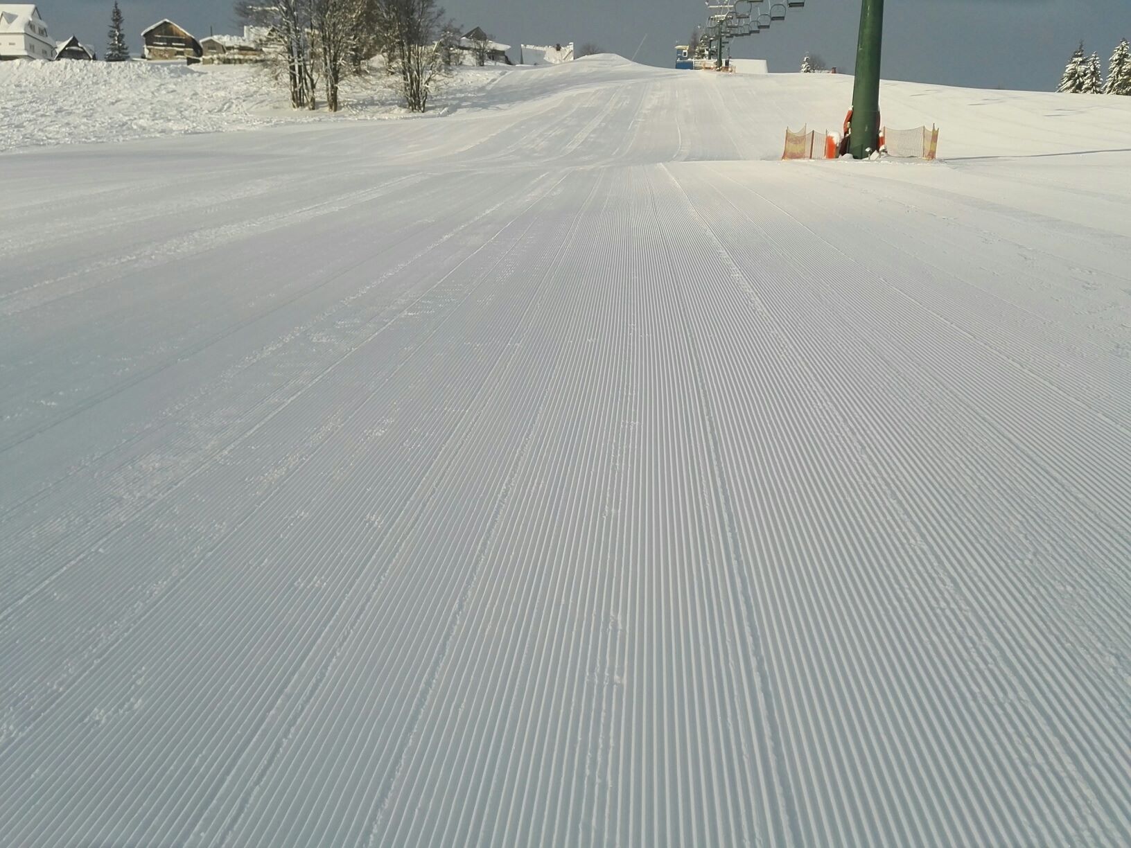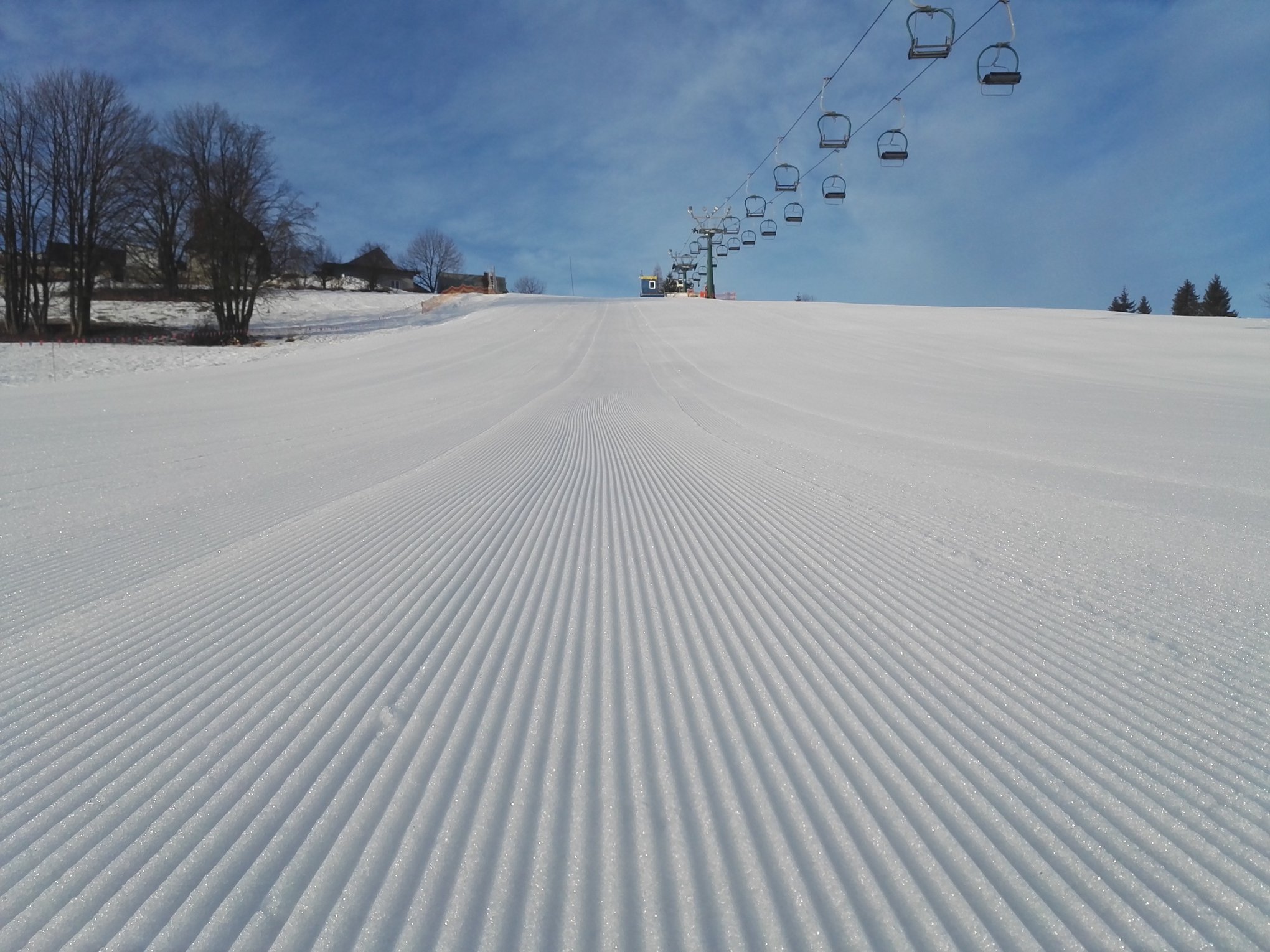 Пад'ёмнік асветлены, заснежаны снежнай гарматай апошняга пакалення, кожны дзень трасу добраўпарадкоўваюць ратракам.